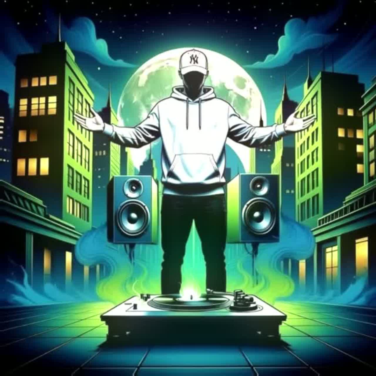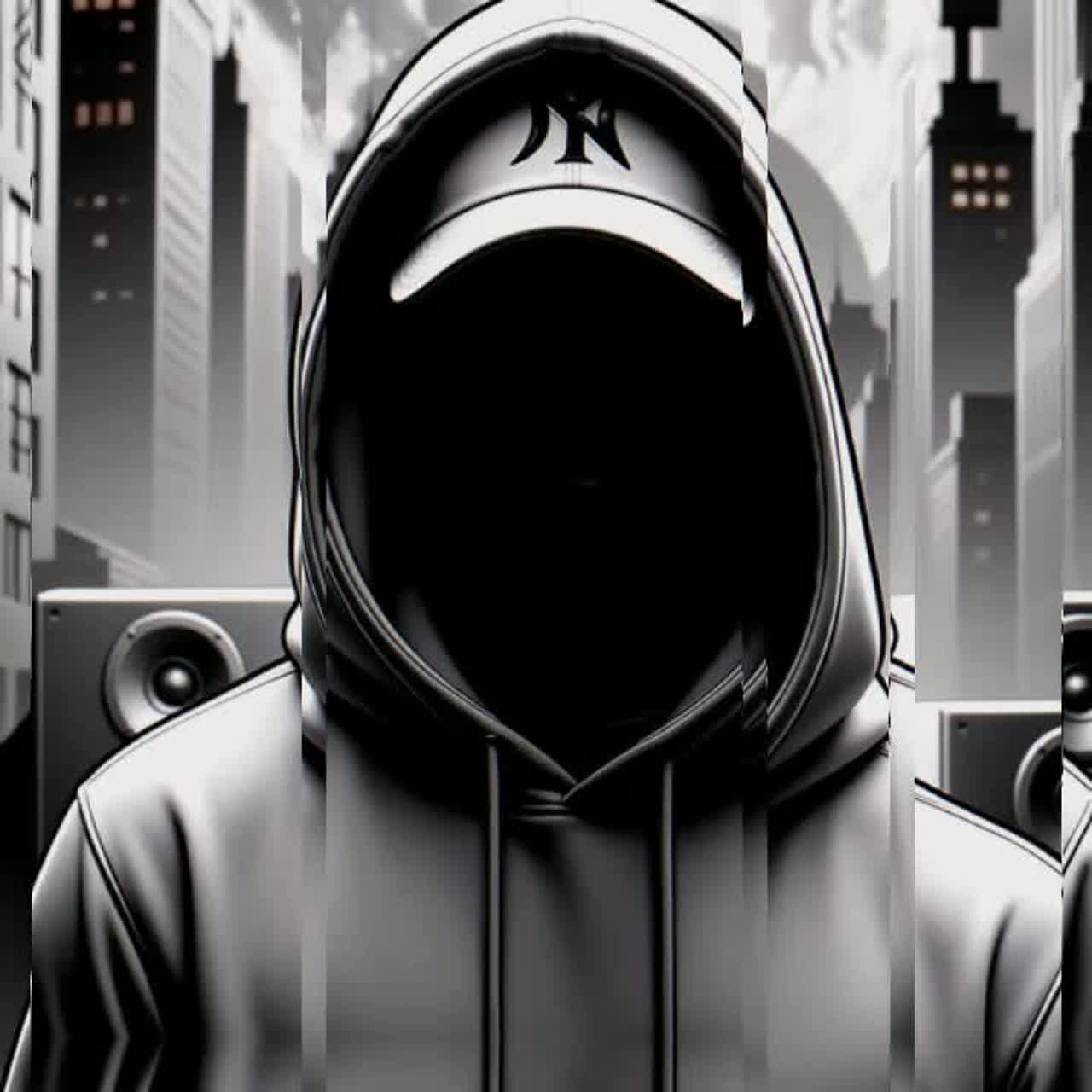 downtempo phonk jazz fusion, slow hazy beats at 85-90 BPM like Illmatic boom bap grit meets chopped Memphis phonk, distorted 808 slides cowbells blended with improvisational jazz saxophones upright bass piano runs, eerie lo-fi synth pads warped soul/jazz samples, heavy vinyl crackle texture throughout, DJ record scratches and turntable effects especially in instrumental sections, early Nas flow: nimble dense multi-syllable internal rhymes conversational urgent delivery silk-smooth low-pitched mumbled rap with reverb delay, poetic introspective mental chaos mood, surreal trippy elements reversed echoes dissonant jazz shifts vinyl hiss and scratches