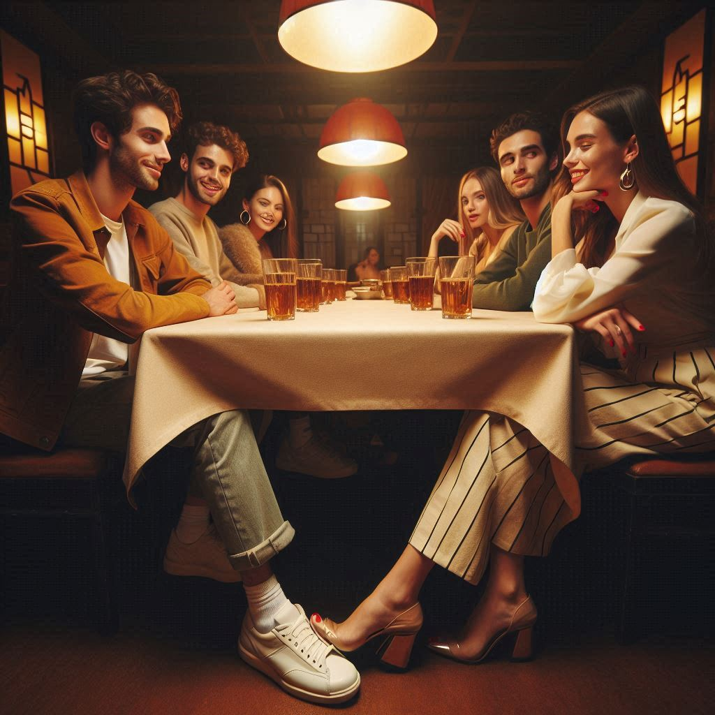A vibrant blend of 80s italo-disco and Mediterranean pop, with shimmering synths, rhythmic funky bass, and electronic percussion driving a dancefloor pulse, Style erotic, Bright electric guitar with chorus adds sparkle, occasionally joined by light Latin-style percussive details, The lead vocal is energetic, nasal and shiny, playful in tone, sometimes slightly dramatic or semi-spoken, with syncopated phrasing that feels excited and dance-inviting, Festive backing vocals echo key phrases and add layers of cheeky ad-libs and harmonized interjections in parentheses at the end of lines to enhance the chorus with theatrical flavor