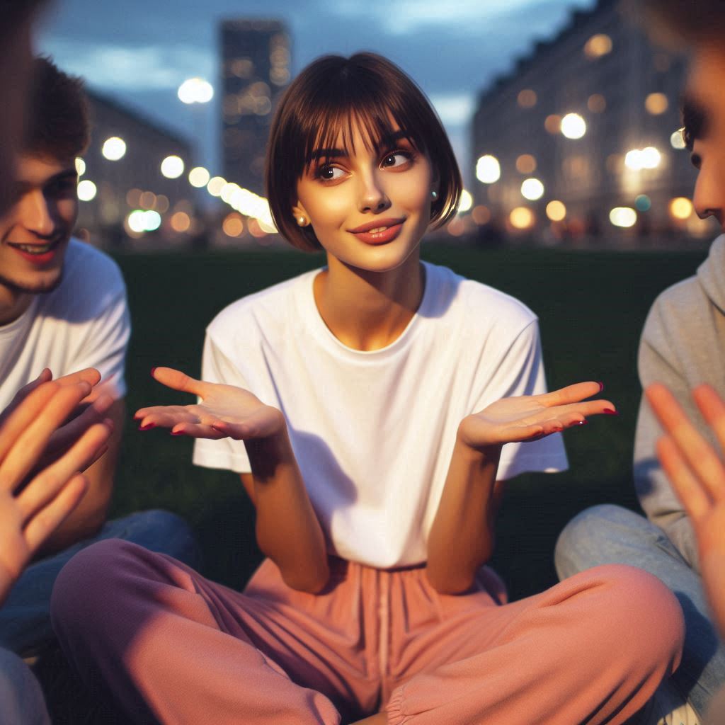 A vibrant blend of 80s italo-disco and Mediterranean pop, with shimmering synths, rhythmic funky bass, and electronic percussion driving a dancefloor pulse, Bright electric guitar with chorus adds sparkle, occasionally joined by light Latin-style percussive details, The lead vocal is energetic, nasal and shiny, playful in tone, sometimes slightly dramatic or semi-spoken, with syncopated phrasing that feels excited and dance-inviting, Festive backing vocals echo key phrases and add layers of cheeky ad-libs and harmonized interjections in parentheses at the end of lines to enhance the chorus with theatrical flavor