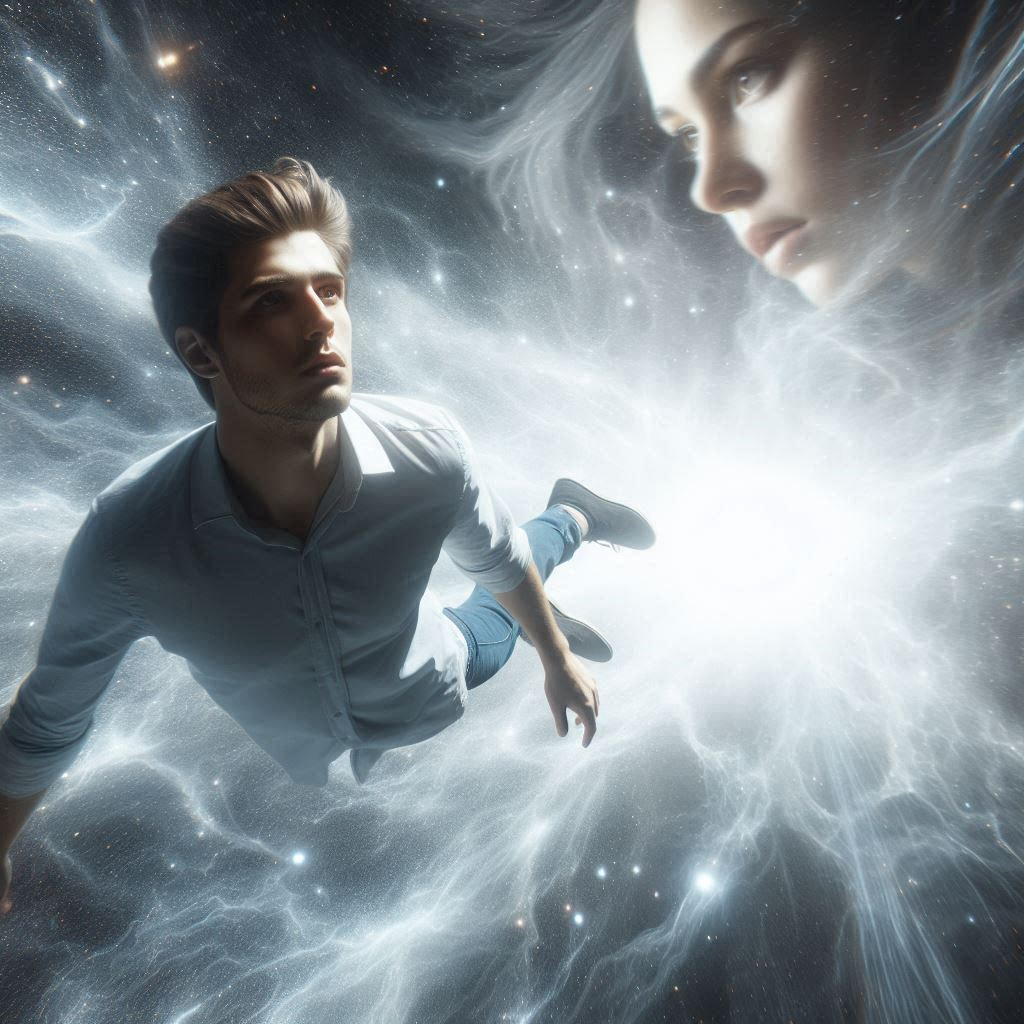 dreamy electronic synth-pop song with cosmic emotional atmosphere, inspired by the limit of light speed, rhythmic yet ambient, space and underwater textures, cosmic wave feeling, mystical energy with subtle hammond organ, celtic and dream Jpop touches, egyptian choral ambient background only as texture (no main choir), solo cosmic male voice, no duet, no extra singers, emotional and intimate tone, ethereal reflective delivery, same lead voice used for parenthetical parts, processed with cosmic airy spatial effect, like her voice dissolving into the universe
