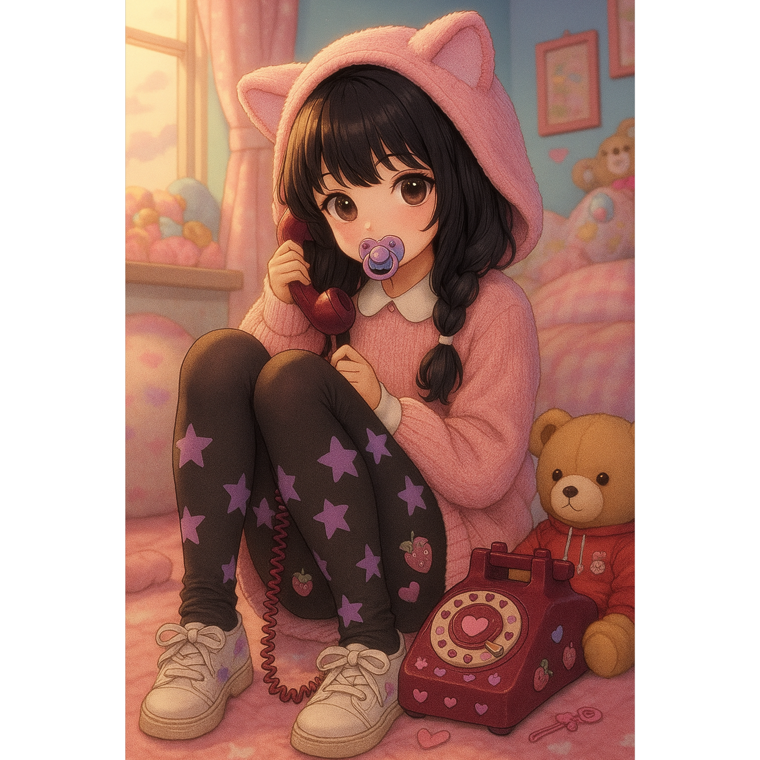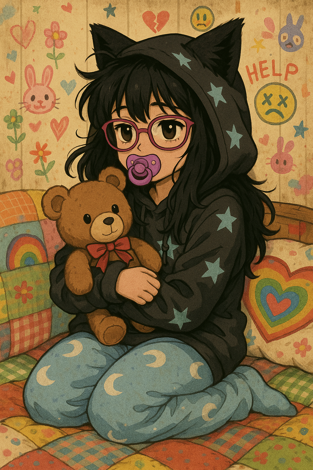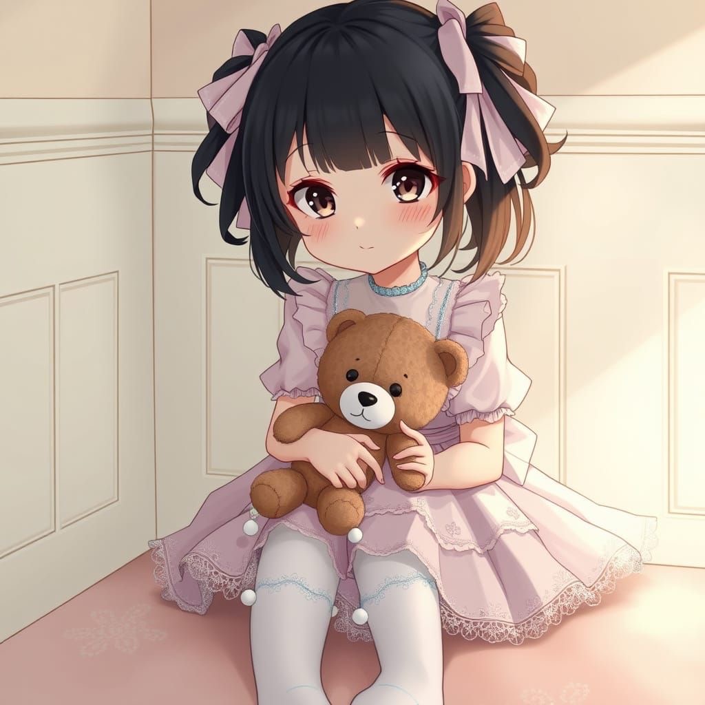Alt Pop, Babycore, Music Box, Creepy-cute synths, Playful Beats, Shy, sweet, female singer, charming ambiance, Dark Bubblegum Pop, Yume Kawaii, melancholic lullaby, haunting nursery rhyme, baby piano