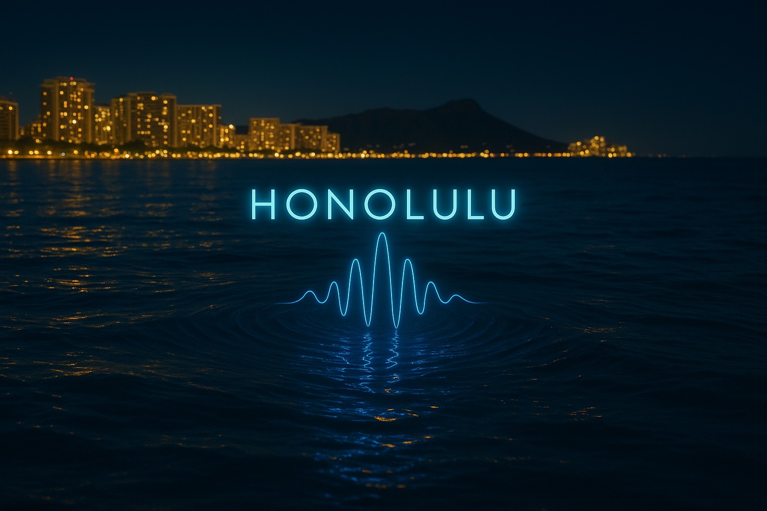 Vibe: warm-night energy, fun, confident, breezy, Honolulu nightlife neon