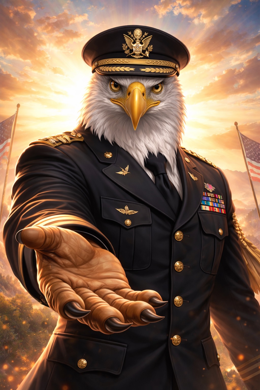 jazz rap swing march fusion, swingstep tempo 96 bpm, big band rap orchestration, peppy swagger groove, walking upright bass, swung triplet feel, brass-driven rhythm, punchy trumpet stabs, muted trombone riffs, saxophone section call-and-response, clarinet flourishes, vintage big band swing energy, tight rimshot snares, brushed snare accents, upright bass slap, syncopated kick, rap verses with rhythmic spoken delivery, half-sung cadence flow, mass male choir chorus, low male chant layers, oktavist bass reinforcement, chant-style unison refrains, martial call-and-response choir, anthemic shouted chorus, cathedral-meets-ballroom reverb, swagger not menace, confidence over aggression, celebratory defiance, disciplined rhythm, theatrical flair, genre hybrid identity, old-world brass meets ritual chorus, swing-forward momentum, unique stylistic collision
