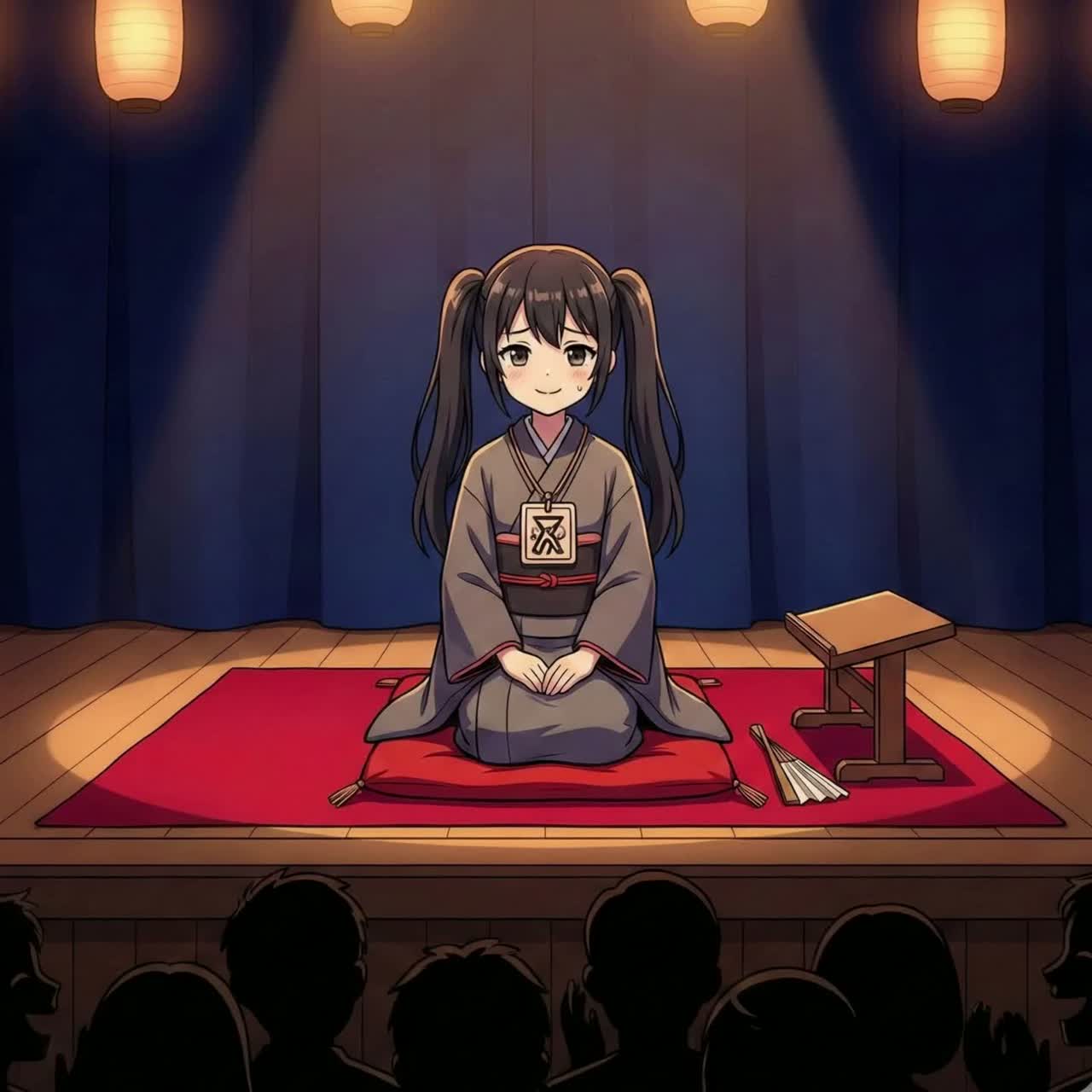 [Voice]Japanese female vocals only, clear diction, cute idol lead, spoken female rakugo intro/outro, spoken female fast chant, NO male voice