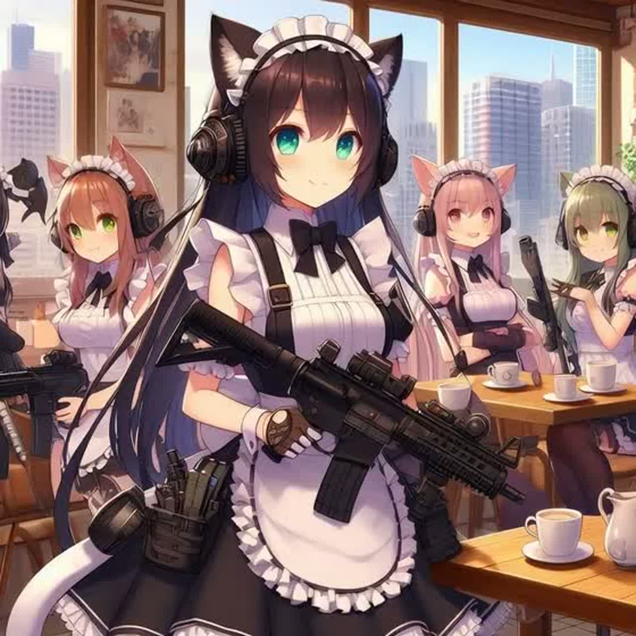 Japanese ska punk, high-energy anime rock, Akiba subculture vibe, maid café battlefield theme, cute but violent contrast, chaotic and playful, fast tempo around 180 BPM, bouncy walking bass, off-beat ska guitar, punchy drums, electro-pop accents, dark comedy tone inspired by Akiba Maid War, female vocal unit, idol group style with character-based vocals, sudden serious chorus drop, no ballad elements, noisy and fun, live-friendly, crowd chant potential