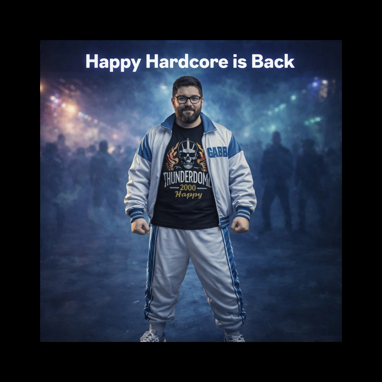170 BPM Hamburg Kiez Happy Hardcore, pounding kick drums, bright rave FX chords, gritty rave stabs, euphoric supersaw lead, deep smoky male voice with norddeutscher accent, MC shout hype vocals, German vocals with Hamburg slang, whistle sounds, crowd chants, chaotic underground club / street vibe, massive euphoric drops, raw party energy, extended intro and build for 3-minute track