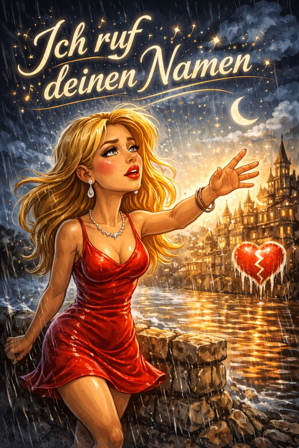 A fast-paced theatrical rock ballad in the style of 70s and 80s gothic rock operas highlighting an emotional saxophone with Musical and Hard Rock elements, Starts with a line from the Chorus, Verses are piano-driven with deep, melodic male vocals and restrained drums, The pre-chorus introduces swelling strings and rising tension, The chorus explodes with distorted guitars, thunderous pounding drums, cinematic strings, layered harmonies, and a gothic choir emphasizing on the sung vocals with epic Aahh's and Oohh's, Verse 2 adds rhythm guitar and orchestral touches, The bridge is a dramatic and gently sung monologue over ambient build-up intensifying into an emotional crescendo leading up to the Finale, featuring a double chorus with a key change and full instrumental climax, Ends with whispered vocals and a single piano chord