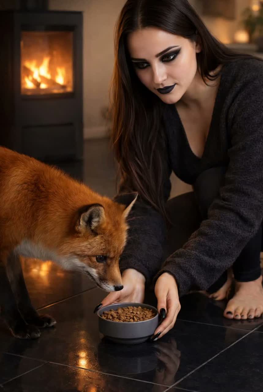 Wild feral folk-cabaret song about a fox obsessed with cat food, 4/4 at ~152 BPM in A minor
