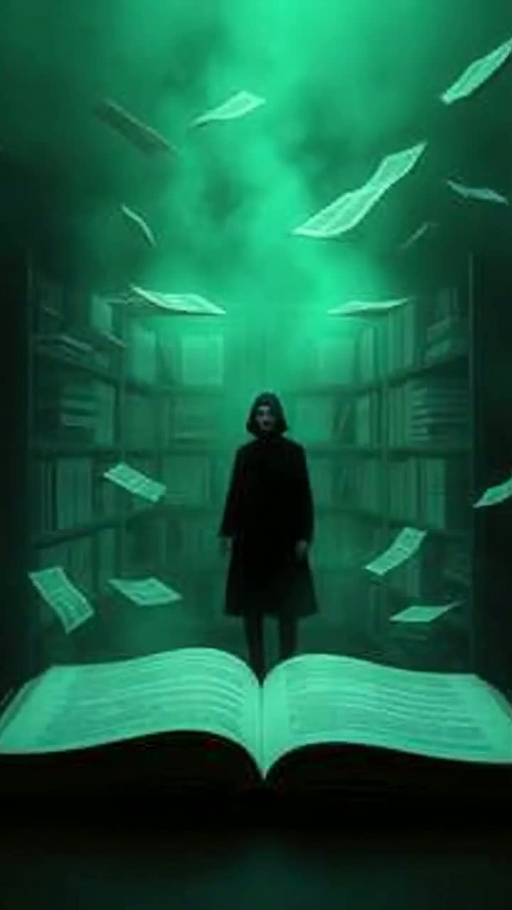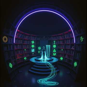 Voice Style: Very low and deep, Slow, calm cadence with deliberate pauses, Speak as though the listener is inside a vast library or void, “Emotionless but curious, cold confidence, slight undercurrent of cosmic amusement, synthwave, mystical
