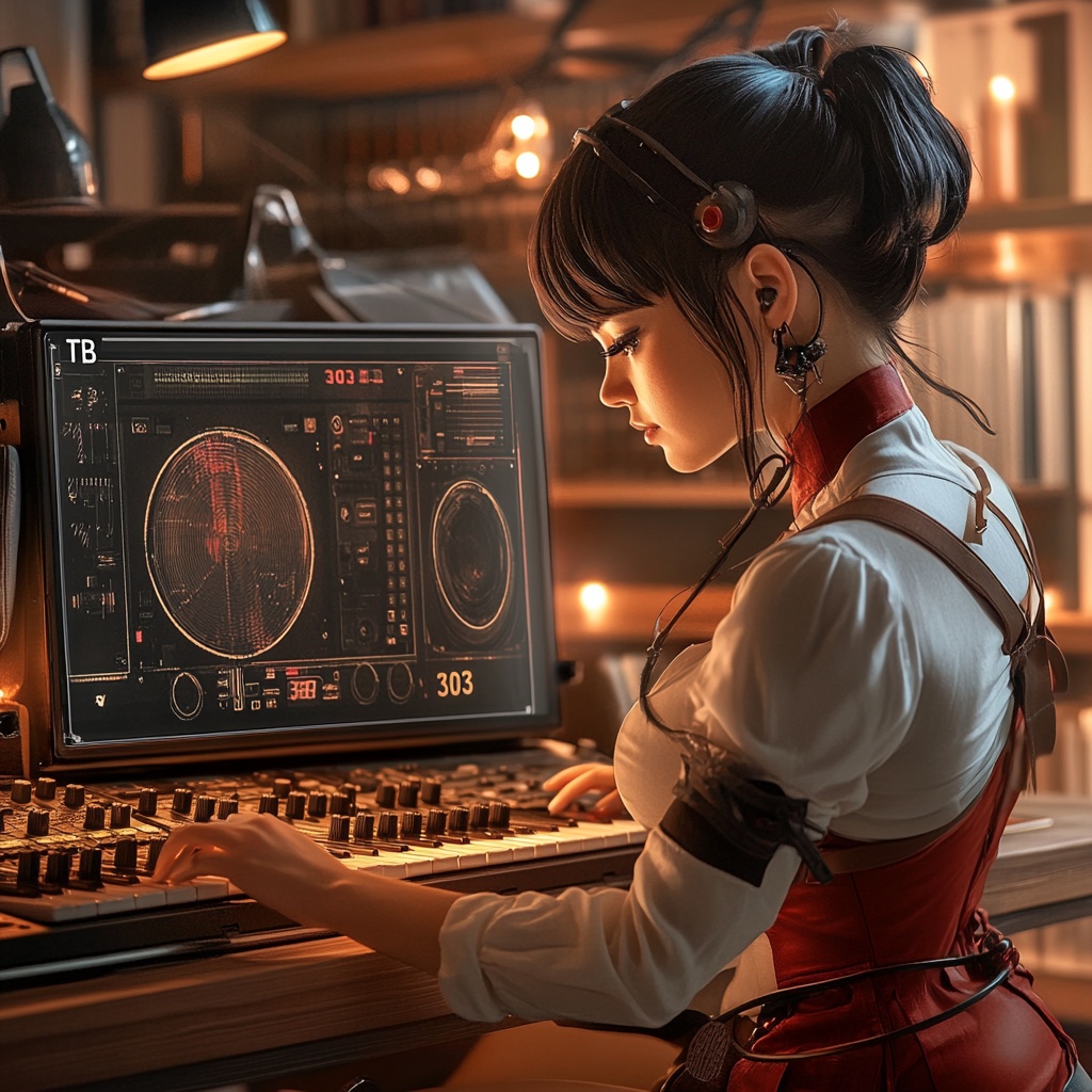 Detroit techno, soulful and driving, melodic synthesizer lines and a strong rhythmic groove, dark, mechanical atmosphere, classic drum machine sound, evolving synth pads, techno