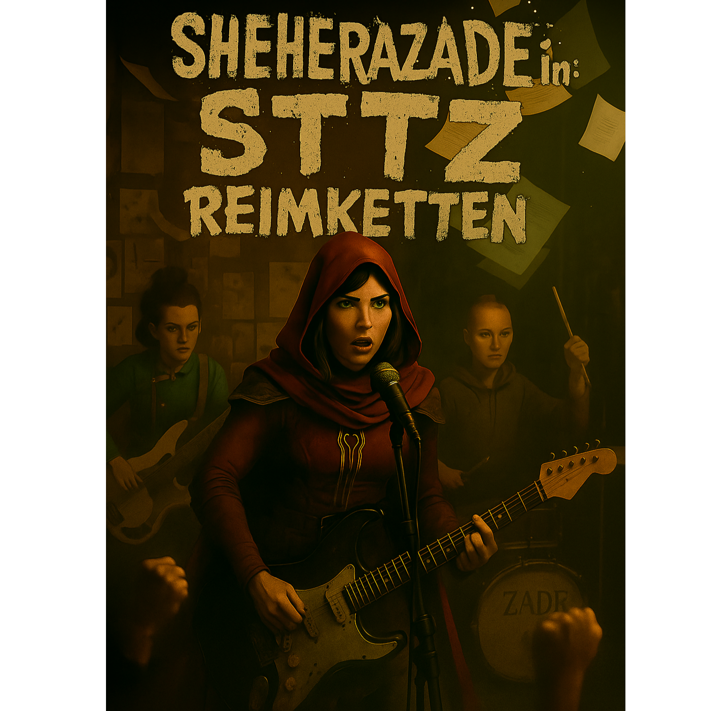 folk, punk, oriental, raï, girl punk band, sitar, delta blues, melodic punk, prominent vocals, shouting background, 3 different female voices, skate punk, talking drum, clean guitar, slide guitar