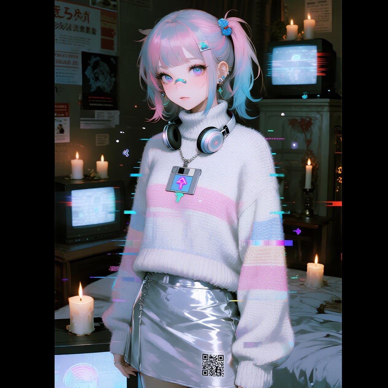 Opening with lo-fi acoustic guitar and airy synth pads, the track fuses bimbocore’s boldness with glitchy syncopated beats and playful vocal chops, Dreamwave synths and punchy drum machines drive the viral hook, while darkwave/coldwave layers add moody, textured depth between intimate, singer-songwriter verses, Mood: 70% Bimbocore (fat bass, glitch, metalcore groove), 20% J-Pop (vocal melodies, kawaii whispers), 10% Halloween psychedelia (bone rhythms, spooky vocal effects), Tempo: ~155 BPM, 4/4, with short “swinging” sections for a bounce feel, Key: A minor with a bright shift to C# minor on the chorus (for tension and a haunted feel)