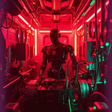 Relentless psy-goa hybrid: 145–150 BPM, squelchy resonant leads over a pounding offbeat bassline, layered acid arps, and wide stereo FX, Kick and bass stay tight and monolithic while metallic percs chatter, Arrangement builds from a filtered intro into full-on peak-time drive, with a mid-track breakdown that dives into spacious delays, then slams back in with a rising formant lead and glitchy vox chops, trance, techno
