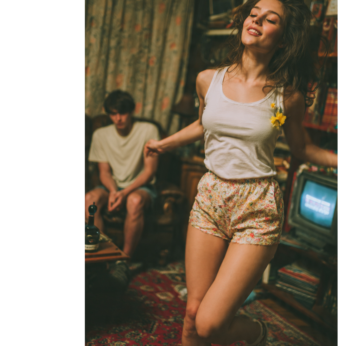 Melancholic acoustic indie grunge rock folk ballad with intimate raw crisp vocals, ASRM, close-mic fingerpicked acoustic guitar, and soft room reverb, Airy doubled harmonies float in the choruses; subtle warm key phrases, blooming then receding, Slow, breathing tempo; verses stay fragile and sparse, chorus lifts slightly with gentle low-end and wider stereo image performed by female and male vocalists, Final refrain falls back to almost bare guitar and voice, a quiet exhale, ballad, acoustic, indie folk, the tempo is approximately 100 BPM, maintaining a consistent, reflective mood throughout, woman tender supporting back vocal in chorus, Chorus consists of two verses first verse performed by female second by male vocals, Production is clear layered instruments, raw crisp rasp slightly reverbed vocals during chorus