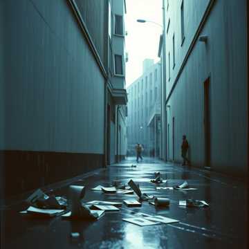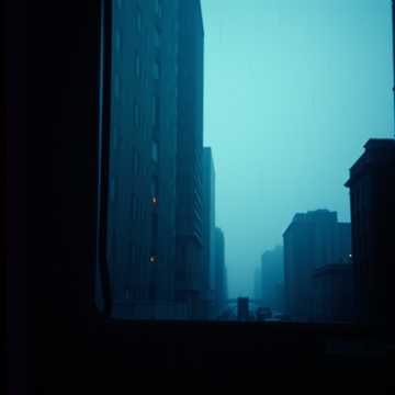 Slow-tempo Scandinavian rock fuses post-punk angularity and ambient industrial layers, Reverbed electric guitars weave eerie, melodic lines over warm analog bass, Sparse, heavy drums punch through a cinematic bed of brooding synths, Male vocals in Swedish shift from whispered intimacy to raw shouts, Tape hiss and vinyl crackle enhance the nocturnal, rain-soaked cityscape, while every element breathes emotional tension and poetic melancholy