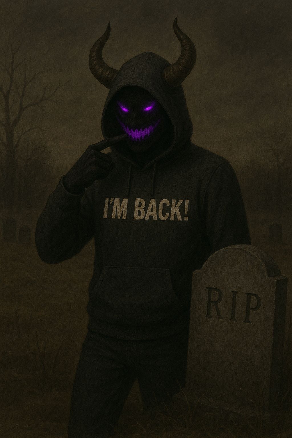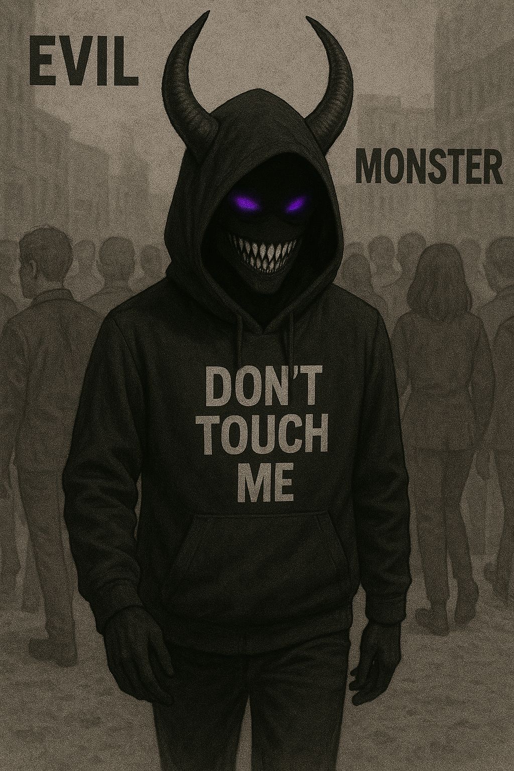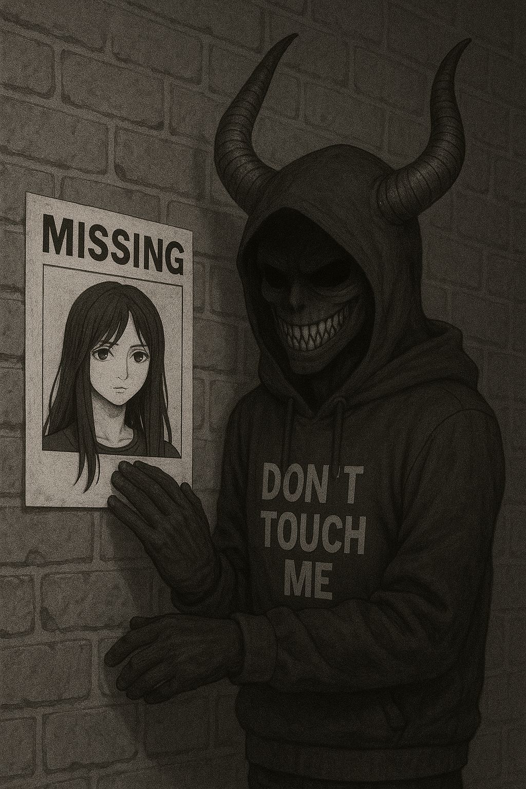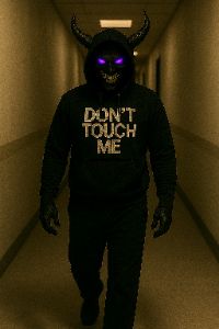 haunting synth lines, male vocals, eerie beat with heavy bass, and male vocals delivering aggressive yet reflective energy, the texture is dark and brooding, with layered vocal effects to emphasize key phrases, scary, low, rap