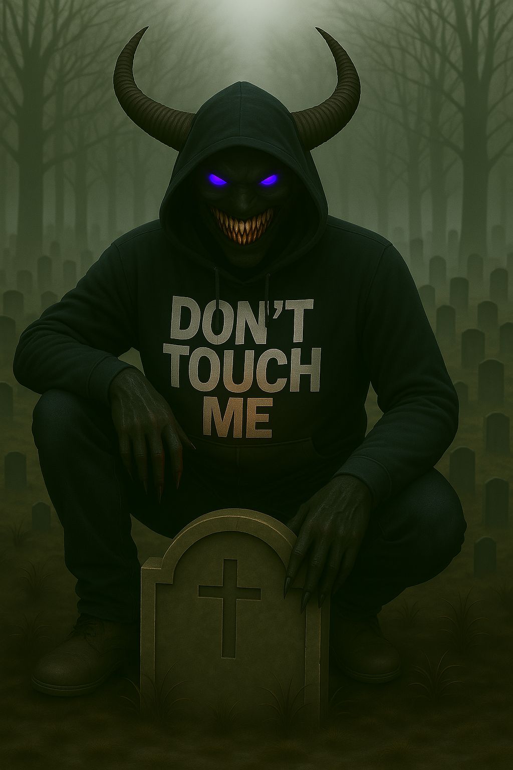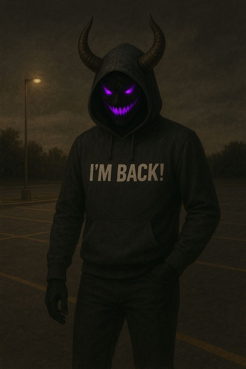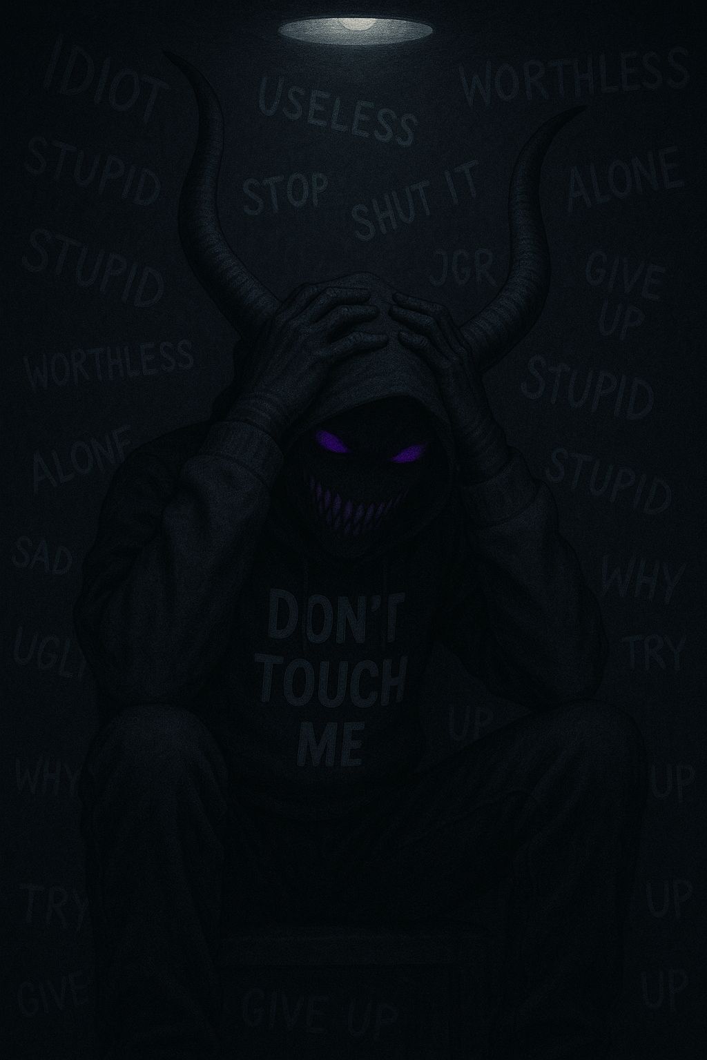 haunting synth lines, male vocals, eerie beat with heavy bass, and male vocals delivering aggressive yet reflective energy, the texture is dark and brooding, with layered vocal effects to emphasize key phrases, scary, low, rap