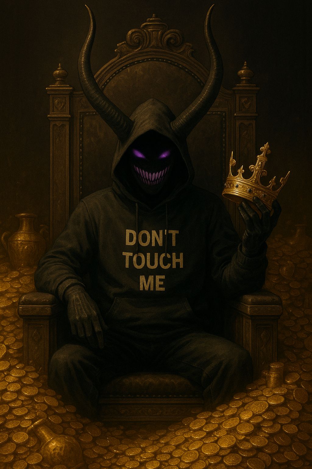 strong, rap, aggressive tone with hard-hitting drums and a grimy bassline, layers of dark synths and sharp hi-hats create tension, strong delivery, while occasional vocal samples emphasize dominance, male vocals