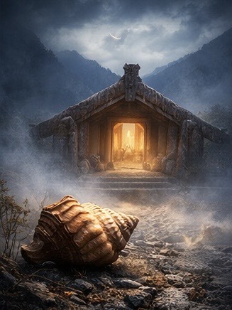 pūtātara conch horn, kōauau flute, gentle pūrerehua wind tone, deep heartbeat drum, soft cello drone, distant ancestral choir pads