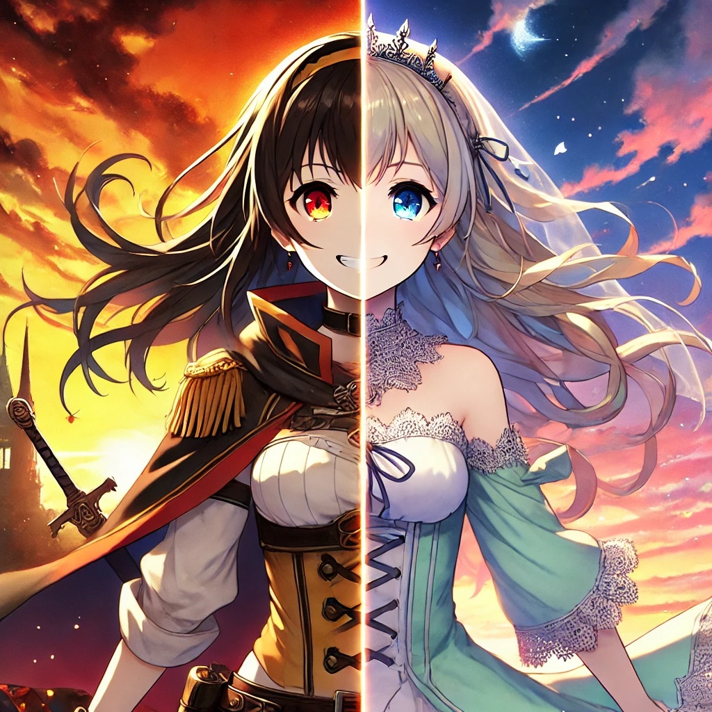 Anime rock duet with electric guitar, upbeat tempo, dynamic vocals, harmonies, and emotional intensity, J-pop influences