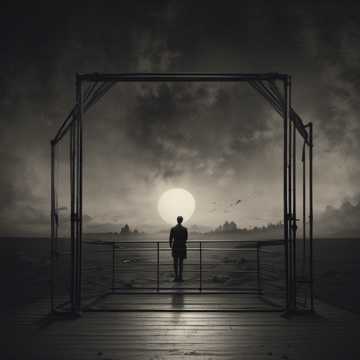 doom metal, drone metal, dark ambient, dramatic dark Gothic phonk metal punk, orchestral arrangements, choir, polyrhythms, atonality, noise, strong male vocal, dark ambient, Symphonic Orchestra, choir, Ambient, Ballad, Meditative, Gospel Renaissance, dark deep void, distant surround sound, loneliness, echoing, unrealworld, underwater, chorus, choir, dark ethereal, distorted sound, Reverb, Delay, whispered vocals
