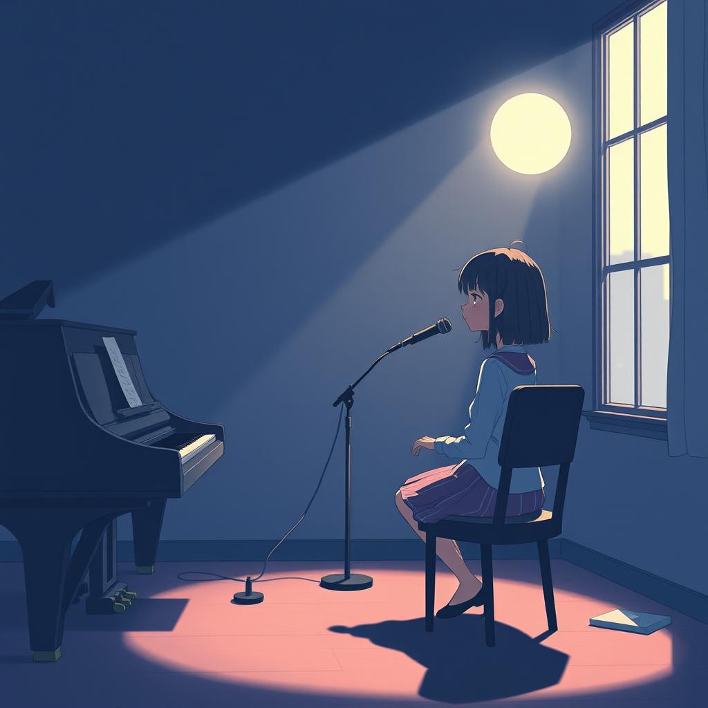 Emotional cute J-pop ballad with dreamy atmosphere, Soft piano, gentle synth pads, light drums and subtle strings, Slow tempo (70–85 BPM), Female vocal, soft, cute and slightly breathy, expressing loneliness turning into love, Verses are intimate and dreamy, building emotion toward the chorus, The chorus should feel uplifting and emotional, Chorus melody should follow the provided audio reference, Anime ending theme style, emotional and nostalgic