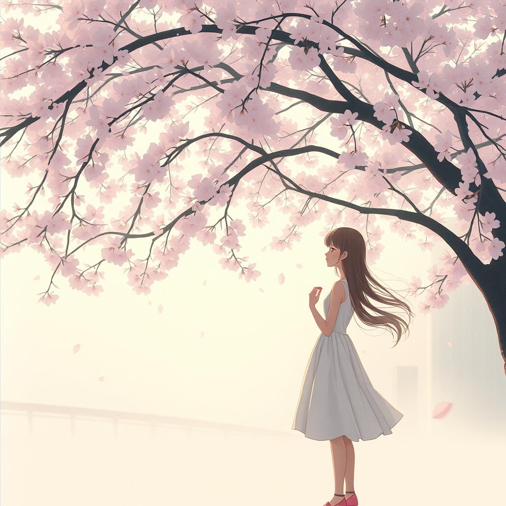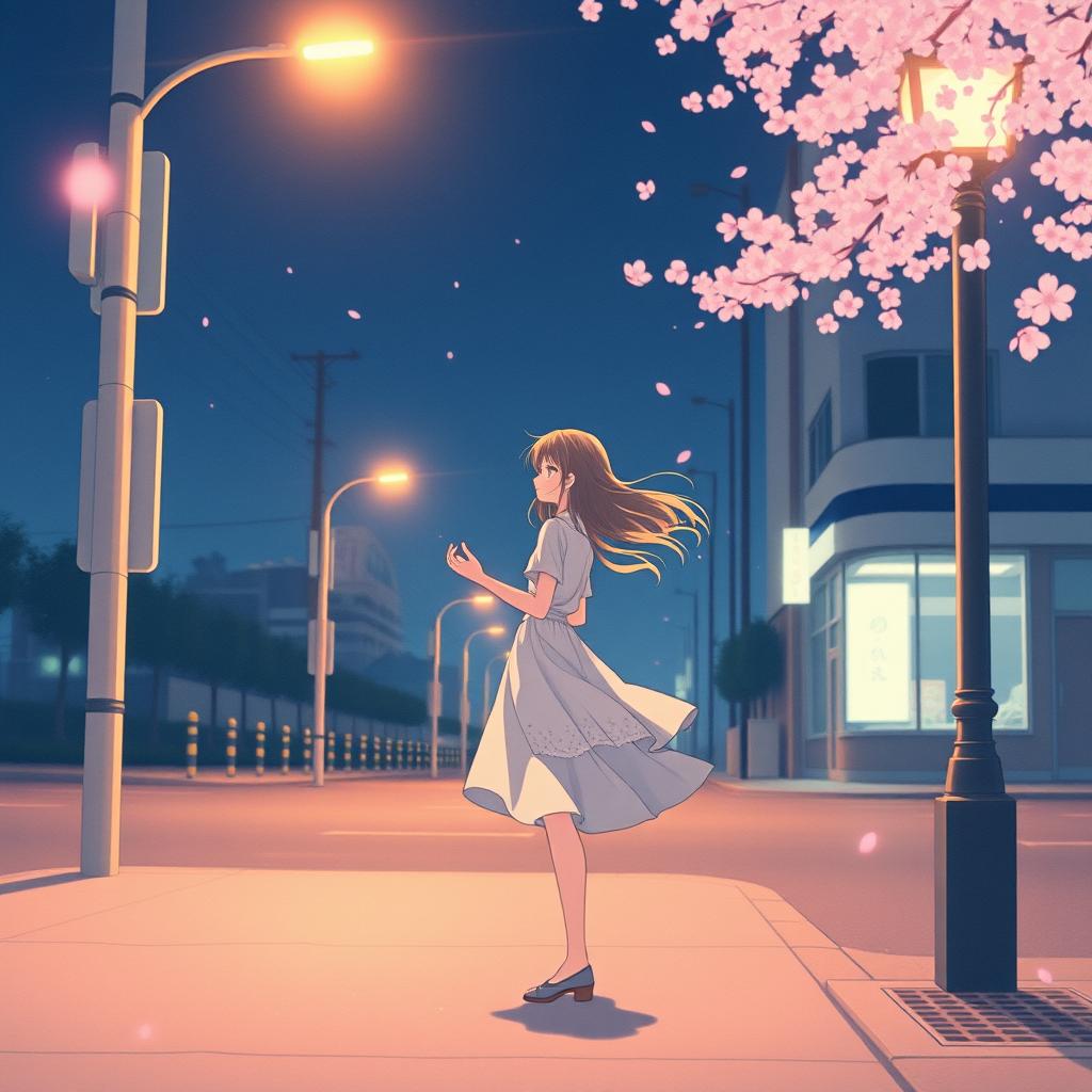 Japanese, poetic, imagery of sakura, night wind, moonlight, fading memories, Title: 「なくした明日」
