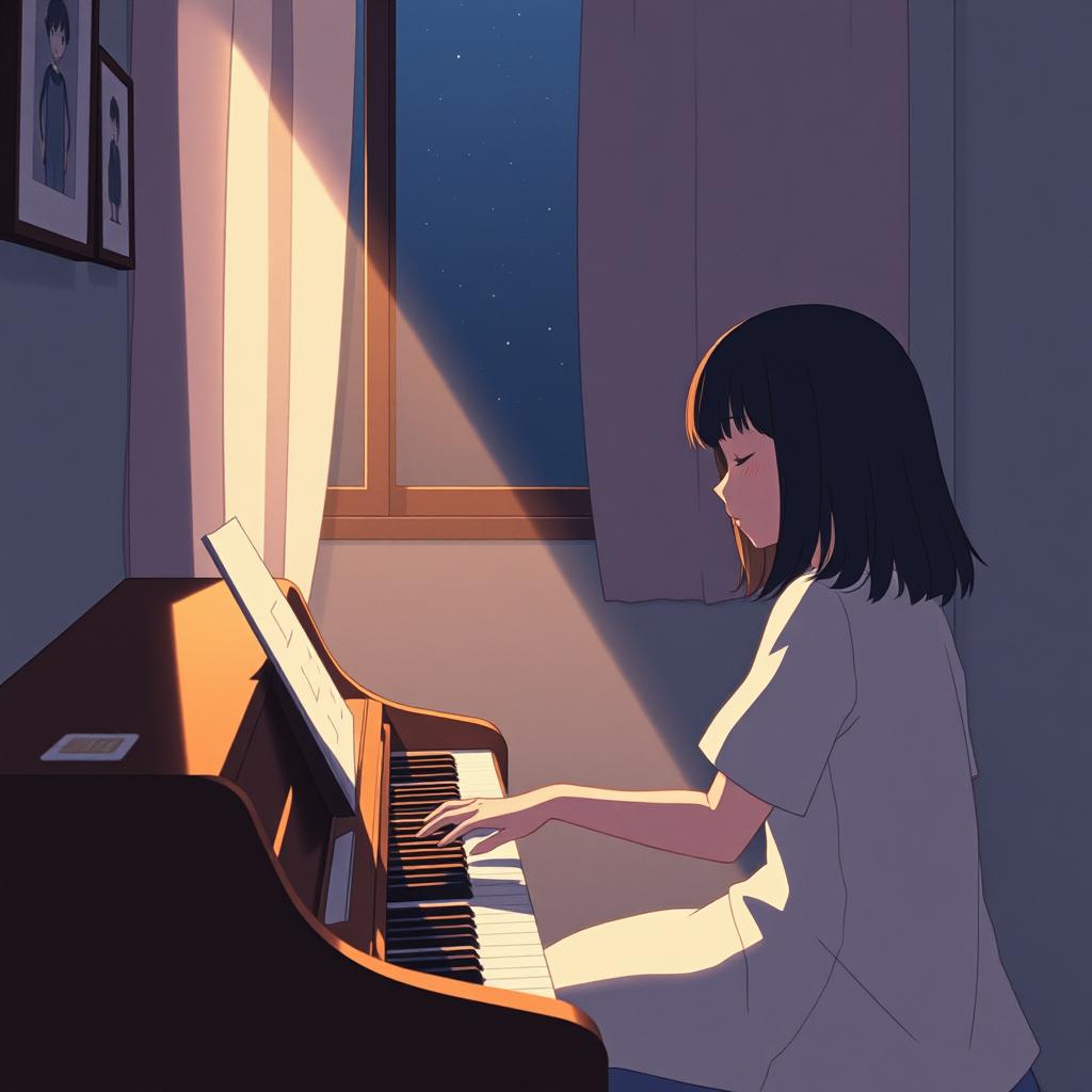 poetic, simple, emotional, imagery of night, memories, gentle sound, Clean mix, soft reverb, spacious atmosphere
