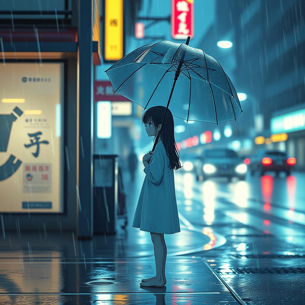 poetic Japanese, imagery of rain, umbrella, night, fading memories, Atmospheric, spacious mix with reverb