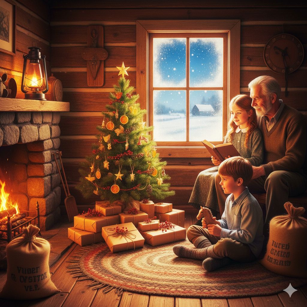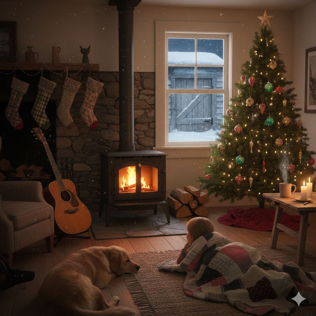 Overall Vocal Style: Warm, soulful, and richly traditional, delivered at a mid-tempo pace, Delivery Notes: The verses are conversational and deeply resonant (soulful storytelling), The tone builds through the third verse, sometimes utilizing Stapleton's signature gravelly texture, The chorus is a full-voice belt, powerful and comforting, The bridge/outro softens to an intimate fade, Song Description: A cozy and nostalgic track focused on the simple, physical comforts of a country Christmas: a woodstove fire, worn boots, and being safe inside during a winter storm
