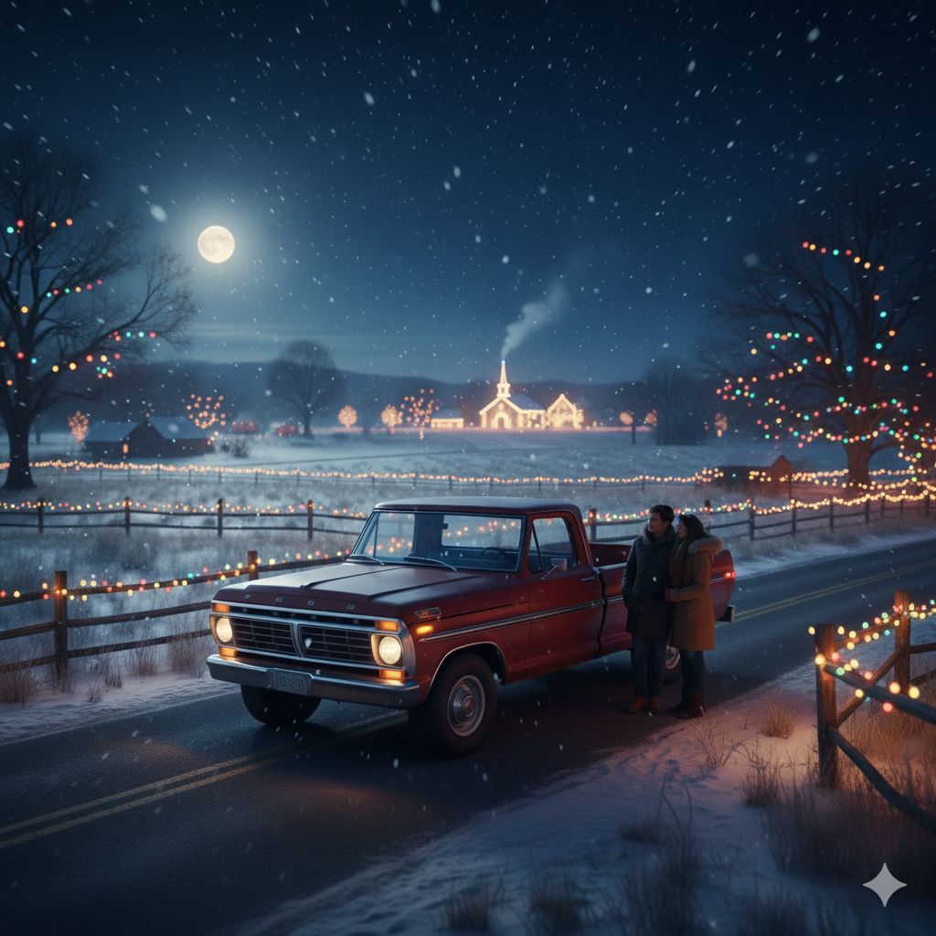Ending with a strong, held final note or high riff, [Music Style: Christmas Country Pop, Driving Beat, Uplifting, Bright]