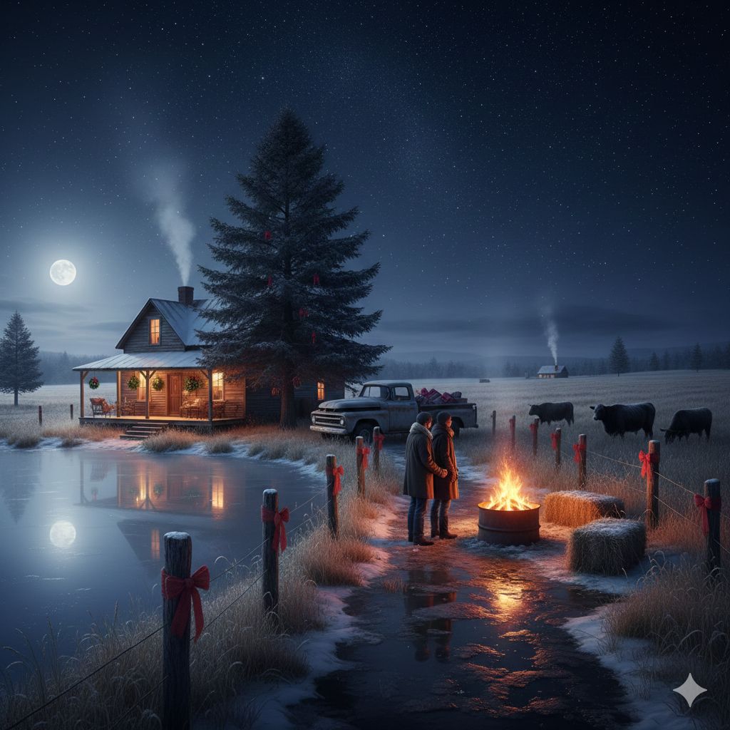 Song Description: This is a gentle, romantic acoustic track set in a rustic outdoor/barn environment, emphasizing the intimate connection between the couple during the quiet Christmas night, Instruments: The track is led by the bright, delicate sound of the Mandolin and fingerpicked Acoustic Guitar, providing a delicate holiday atmosphere, The Fiddle provides warm, smooth melodic lines, while the Upright Bass anchors the rhythm, Soft background harmonies support Chris tender lead vocal