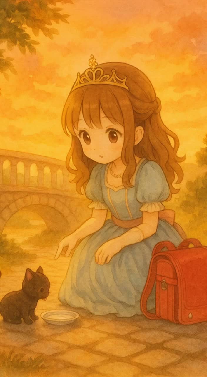 Set at a glamorous ball, this adorable waltz in three beats depicts a black cat gradually growing closer to its owner from its perspective, The intro opens with light strings and soft piano, while a double bass accompanied by stepping sounds adds elegance, The first chorus depicts the joy of meeting, while the second verse depicts the changing sense of distance through glances and smiles, The third chorus emphasizes the intimacy of being held close in each other's arms, The verses incorporate the sounds of tapping paws and bell-like bells, with onomatopoeia rhythmically placed, The bridge creates a dreamlike moment with drum rolls and whispering strings, before fading out with a lingering echo, The vocals are a lovely, yet elegant, female voice that gradually changes to a sweeter, softer nuance, ‑Rock guitar, ‑hard rock drums, ‑electric bass slap, ‑jazz improvisation solo, ‑blues harp, ‑synthwave elements, ‑deep EDM kicks, ‑Vocaloid-style effects