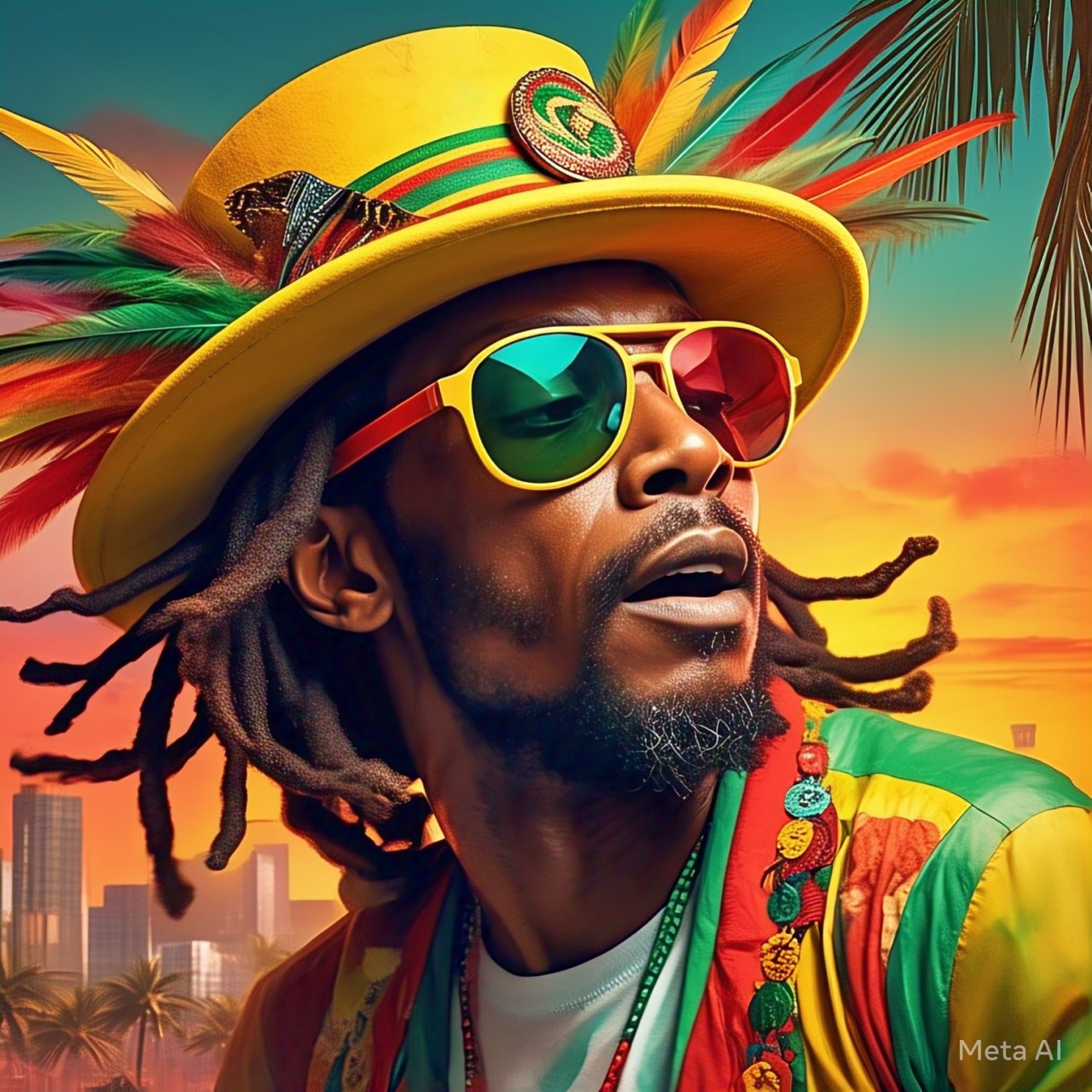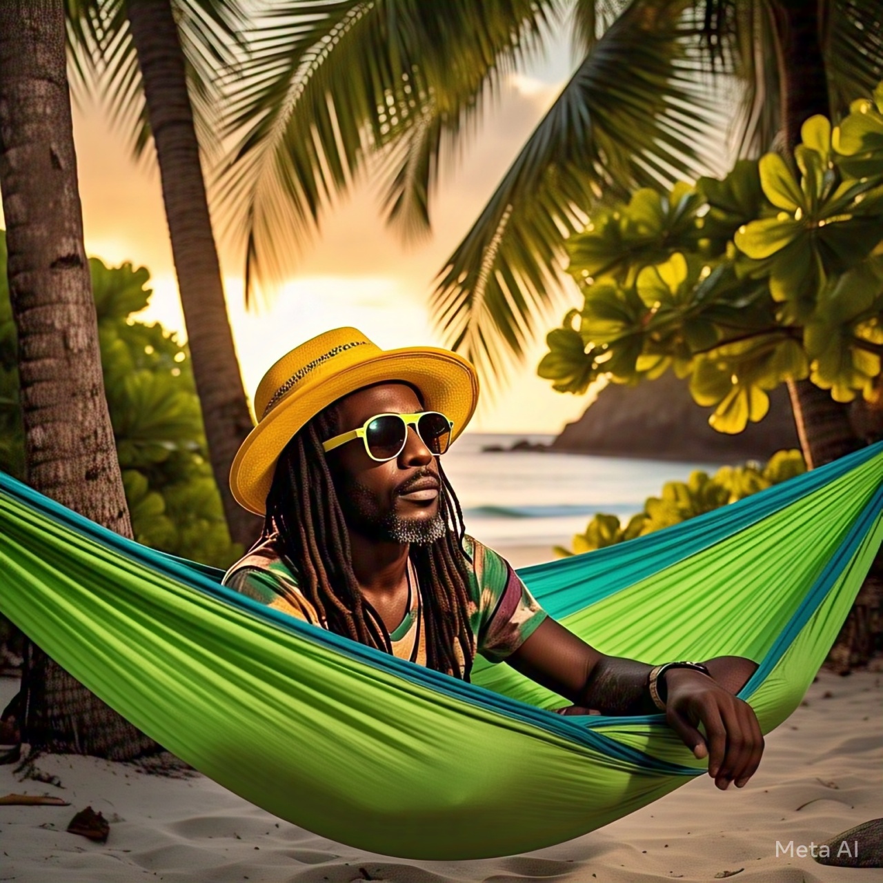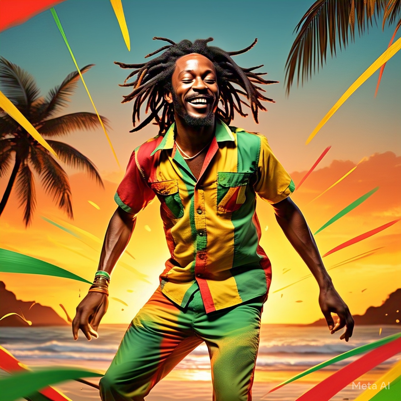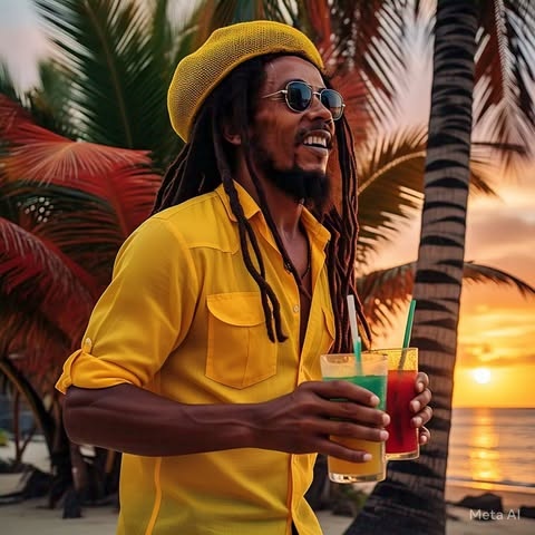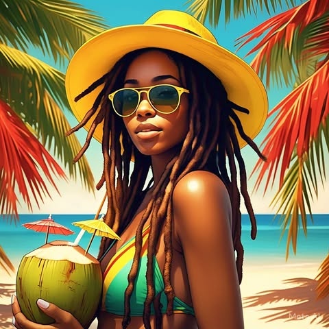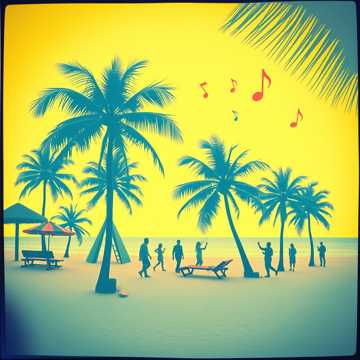 Reggae, Island Vibes, Palm Trees and Sunshine, Strong Beat, hand drums