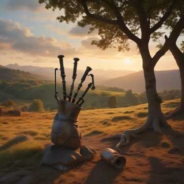 atmospheric progressive rock, melodic acoustic guitar, flute solo, bagpipes solo, celtic folk