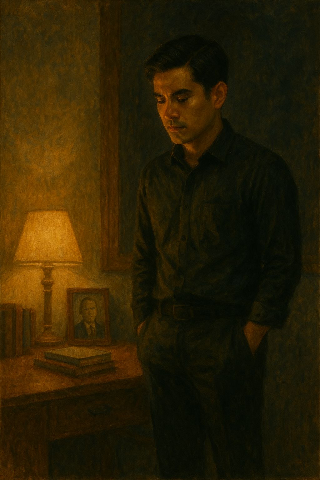 Cinematic alt-pop, 88 BPM, rimshot kit, cello stabs, low synth bass, Male lead vocal (baritone), controlled and dry, clipped phrasing; subtle doubles on refrains; tensioned ending, Use the same melody structure as the classical base, Single vocalist only, No sound effects, musical instruments only, [ambience: dim study, heavy air]