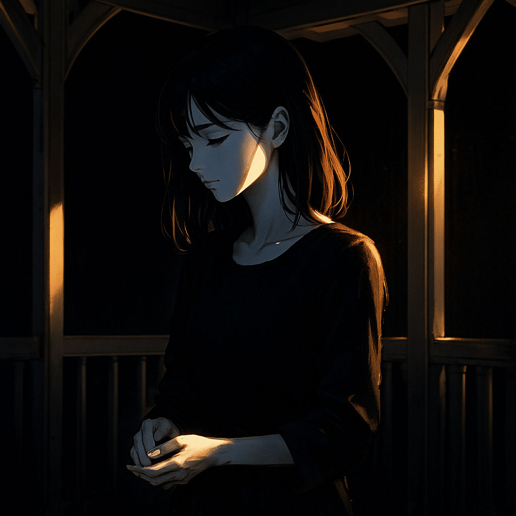 Neo-classical electronica, 82 BPM, felt piano + muted electric guitar + soft analog pad; male lead vocal (light lyric tenor–baritone), close-mic; two textures: breathy verses, lightly doubled brighter refrains; one-bar instrumental answers, Use the same melody structure as the classical base, Single vocalist only, No sound effects, musical instruments only, [ambience: neon afterglow through an apartment window]