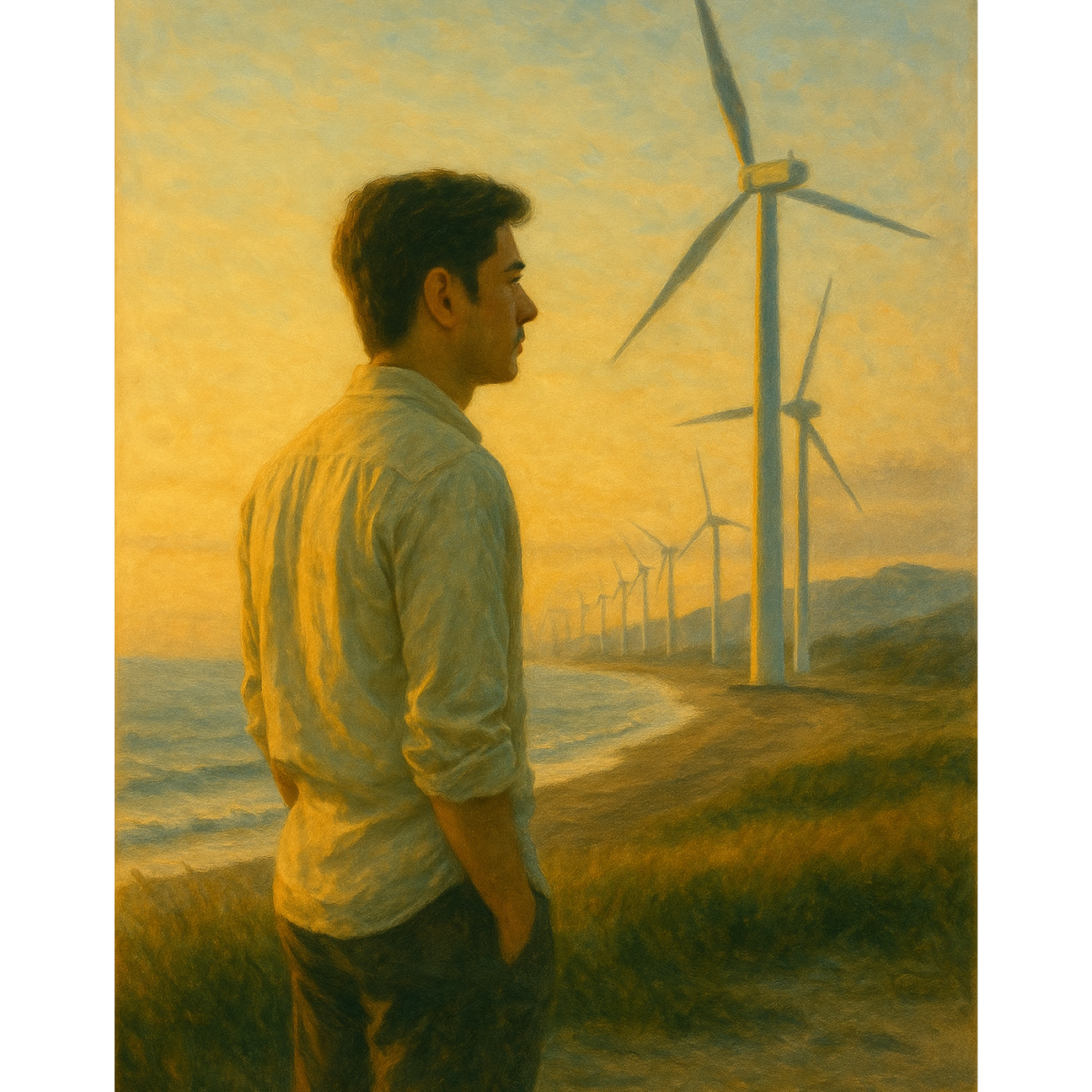 Folktronica road song, 98 BPM, acoustic strum, brushed kit, pulsing pad, Male lead vocal (light tenor), airy conversational tone, Two textures: breathy verse, brighter refrain, Brief Tagalog lift at verse tail or first refrain (hilaga or hangin), One-bar instrumental call-and-response, Use the same melody structure as the classical base, Single vocalist only, No sound effects, musical instruments only, [ambience: windows-down dawn wind]