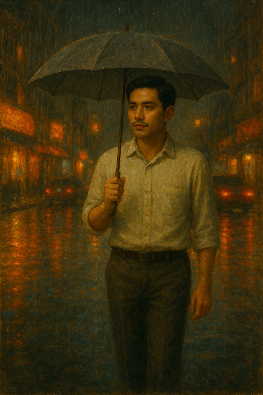 Ambient soul / piano pop, 72 BPM, felt piano, soft bass, brushed kit, rain-like hi-hat pattern, Male lead vocal (tenor), weary but warm, spoken-to-sung phrasing, One short Tagalog line in the bridge (“wala nang iba”) to mirror closure, Use the same melody structure as the classical base, Single vocalist only, No sound effects, musical instruments only, [ambience: rain on glass, night city light reflections]