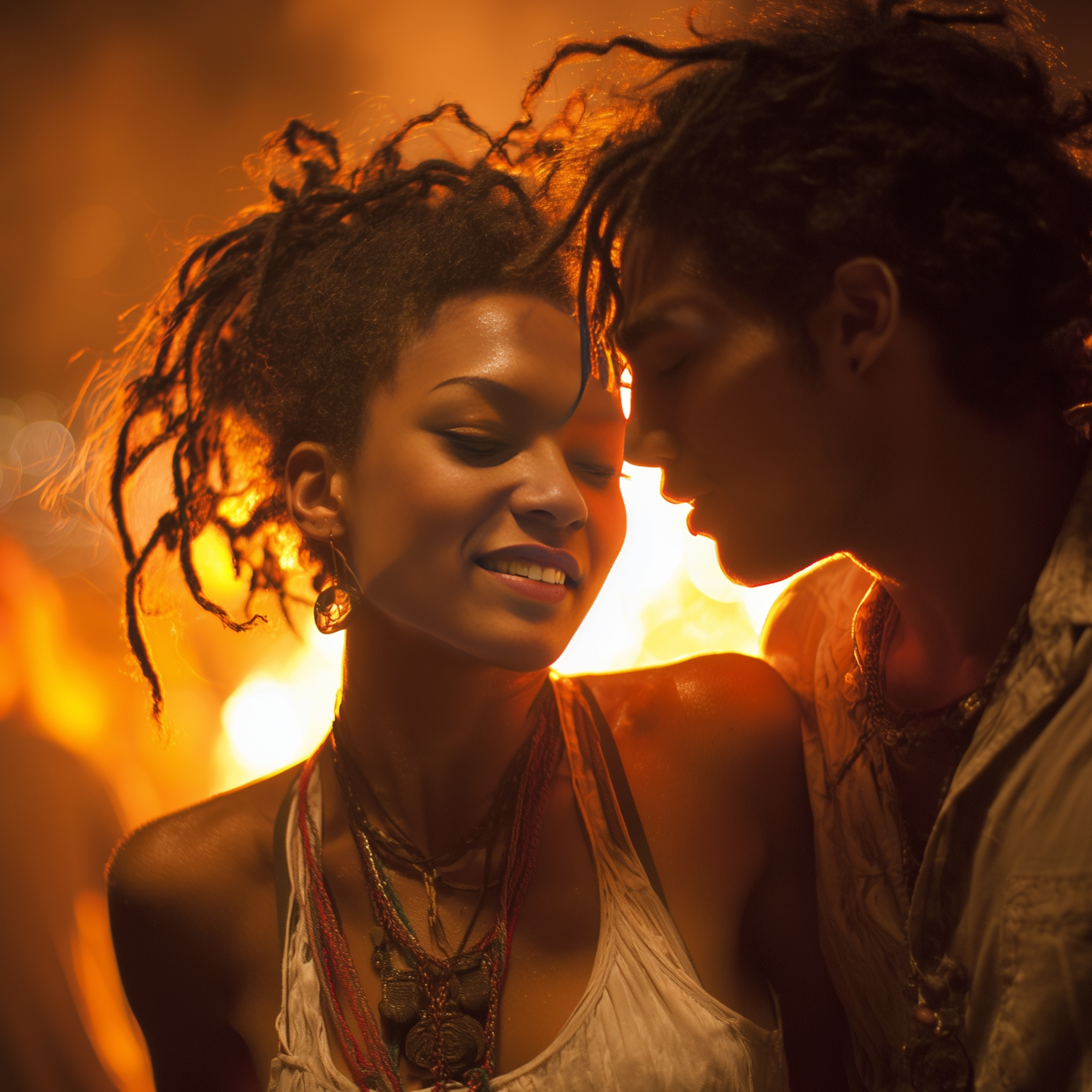 Create a fast, percussive voodoo-gospel track inspired by the Mississippi Delta and New Orleans rituals, sung by a Creole voodoo priestess Tempo 105 BPM, full of rhythm and energy, Use layered hand drums, tambourine, and call-and-response chanting between the lead priestess and her followers, Include moments of intense chanting repeating “Mercy lives here” and “The spirits decide, ”