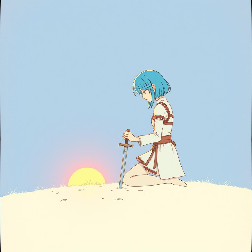Orchestral instrumental ending theme inspired by classic Japanese RPG finales, Piano opens with calm, grounded chords expressing quiet triumph, while solo violin carries a restrained lyrical melody tinged with lingering sorrow, Harmonies move between warm major tones and subtle minor inflections using maj7 and add9 colors, suggesting victory shadowed by loss, Soft pizzicato strings provide gentle forward motion without percussion, gradually giving way to legato string ensemble that broadens the emotional space, The piece unfolds slowly, balancing resolution with unanswered feeling, Dynamics remain controlled and breath-like, never fully celebratory, conveying a silent triumph that carries the weight of what was sacrificed, Cinematic, reflective, and deeply emotional, suited for an ending where the journey is complete, yet something precious is gone