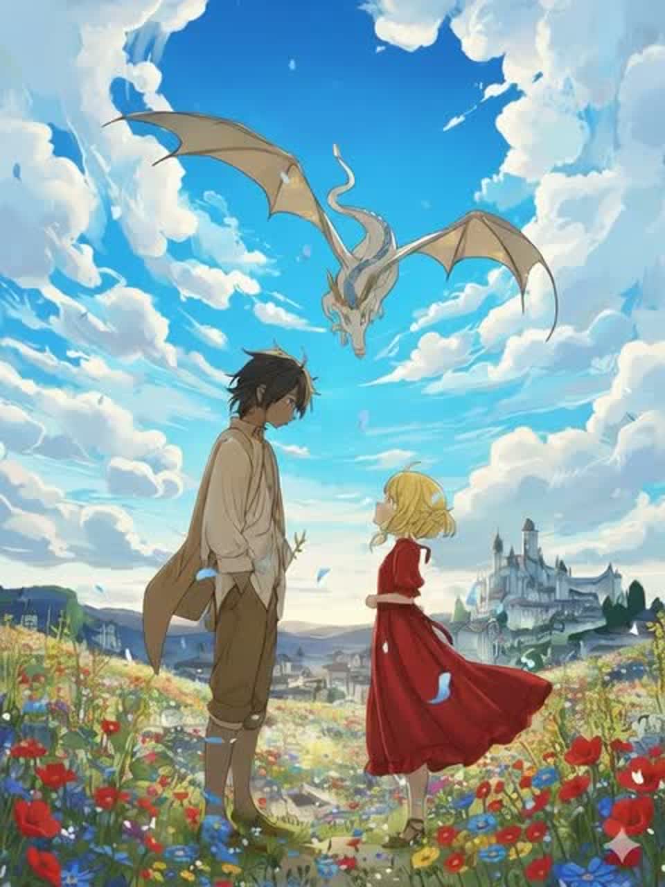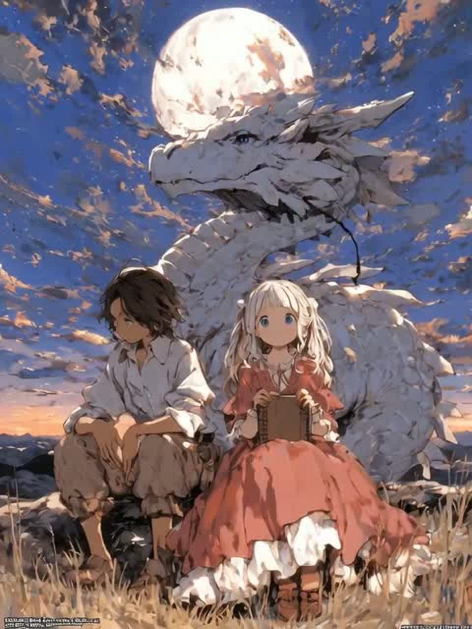 A soft, luminous fantasy orchestral piece set on a hill above a castle city during a night of fireworks, where a quiet girl rests beside a gentle dragon under a huge moon, Tempo around 72 BPM in 4/4, no percussion, Harp and warm piano weave slow broken chords and sustained voicings, supporting a clear flute and later oboe or soft strings that sing long, lyrical legato melodies, Avoid fanfare rhythms or heroic brass; everything should feel like private wonder rather than spectacle, Harmony stays around D major and B minor with maj7, add9 and occasional Lydian color, glowing but not triumphant, Dynamics remain pp–mp with only small swells following the arcs of the fireworks, The overall feeling is of trust, protection and quiet celebration, perfect for gentle fantasy BGM, ‑percussion, ‑vocals, ‑lyrics, ‑pop, ‑EDM, ‑trap, ‑metal, ‑pads, ‑synths, ‑ambient effects, ‑overcompression, ‑excessive stereo width, ‑vocals, ‑lyrics, ‑distortion, ‑heavy percussion, ‑long reverb, ‑bright cymbals, ‑pads, ‑synth leads, ‑EDM, ‑trap, ‑pop elements, ‑excessive brightness