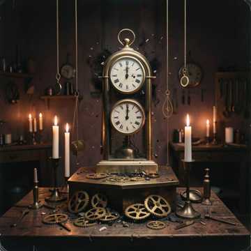 Dark cinematic post-punk / gothic blues, Tempo 90–100 BPM, heavy and steady groove, Deep pulsing bass, slow distorted guitar riffs, minimal ticking percussive elements like a clock, Male vocal — deep and rough, gravelly preacher tone with slight distortion and tape saturation, southern accent, half-sung half-spoken like a haunted sermon, Hook must be strong, repetitive and rhythmic, almost like a chant: “Bij, zegarze, bij”, Delivered with increasing intensity each time, Verses calmer, tense, storytelling, Hook louder, more aggressive, almost shouted, Mood: dark, ritualistic, obsessive, like a prayer turning into breakdown, Wide reverb, immersive atmosphere