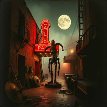 doom jazz, trip hop, industrial rap, circus trap, 92 BPM, didgeridoo pulse, upright bass, muted brass stabs, dissonant accordion, cabaret piano, 808 sub-bass, granular synthesis, throat singing rap, guttural fry vocals, vinyl crackle, mid forward mix, wide stereo image, abrupt scene shifts, dark cabaret, noir dread, ‑lo-fi, ‑shimmering, ‑tapestry, ‑neon, ‑acoustic, ‑bright, ‑happy, ‑major key, ‑guitar, ‑pop, ‑rock, ‑metal, ‑whispers, ‑echoes, ‑soul, ‑shadows, ‑light, ‑generic, ‑low-resolution, ‑airy, ‑orchestral