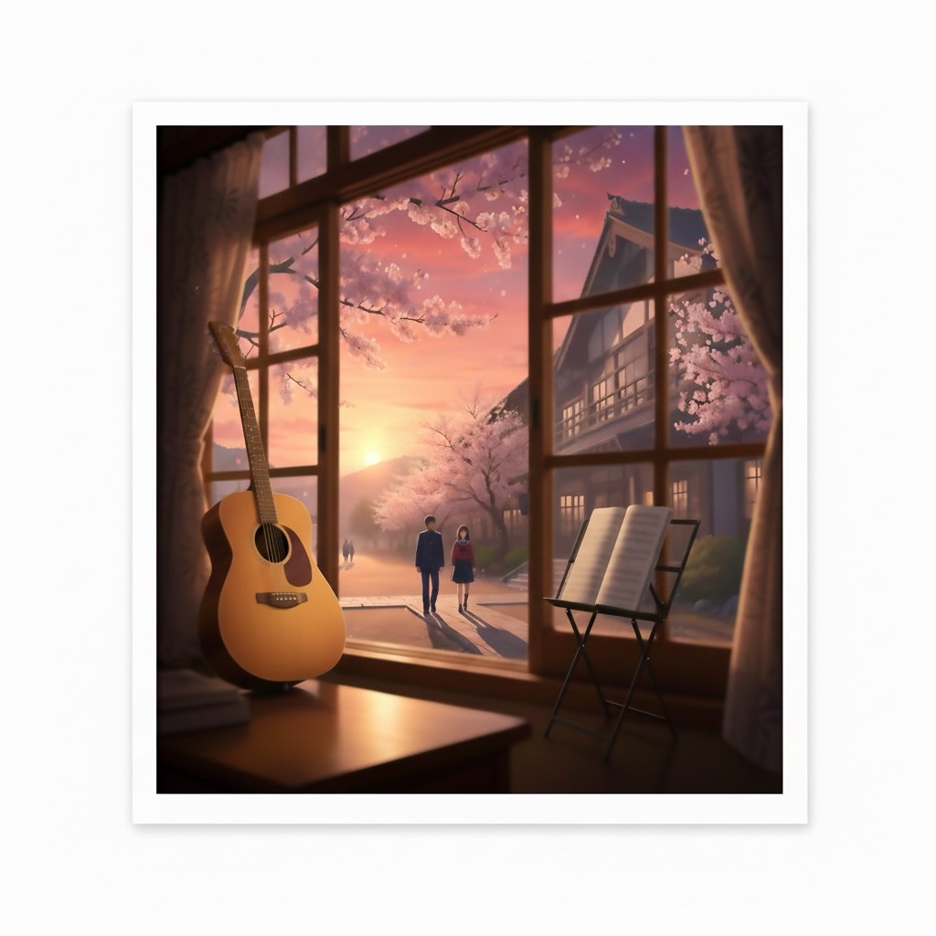Gentle and heartwarming J-pop, female vocals with airy and crystal-clear tone, Acoustic guitar fingerpicking, soft emotional piano, light orchestral strings, subtle glockenspiel for a magical touch, 90 BPM, 4/4 time, Peaceful, cozy, and nostalgic atmosphere, The melody is sweet and soaring, High-quality production, anime ending theme style
