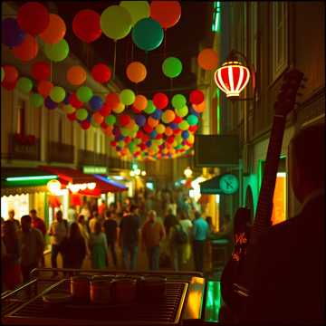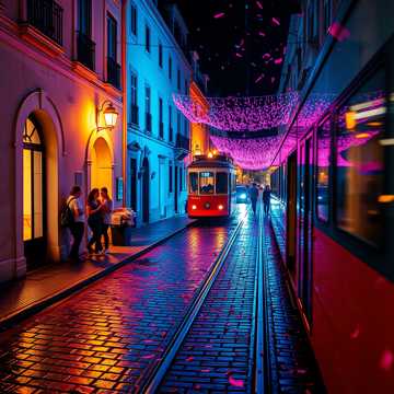 dance, Upbeat fado-electro fusion with male vocals; bright Portuguese guitar hooks over a bouncy four-on-the-floor kick and warm synth bass, Verses stay intimate with close-mic vocal and subtle claps; chorus explodes with crowd chants, accordion stabs, and festival whistles, Energy arcs from street-stroll groove to full-on dance-floor chant, with a brief breakdown for a singalong bridge, electro, fado