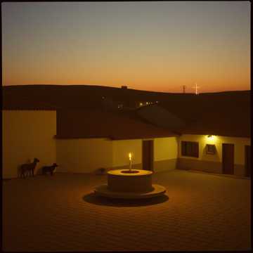 dance, Fado-electro hybrid with elder male vocals, deep reverb on a storytelling lead, subtle Portuguese guitar phrases over a pulsing four-on-the-floor kick, Verses stay intimate with sparse pads and low sub swells; chorus blooms with bright synth arps, claps, and chanted backing vocals, Gradual energy lift toward a final, anthemic hook, then tailing off in echoing vocal repeats and a lingering drone, fado, electro