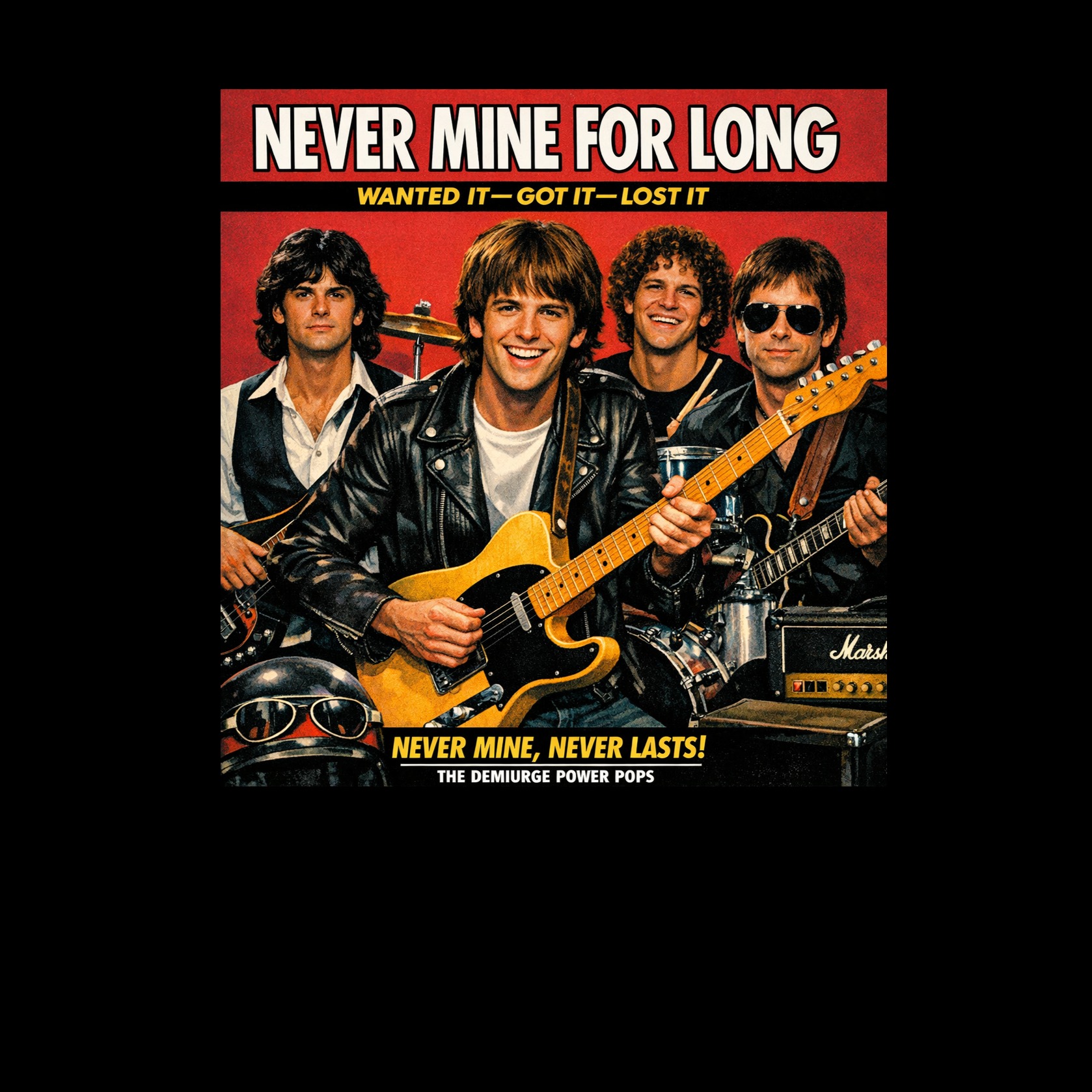 Power pop 1979, Knack My Sharona style, dry dead room recording, no reverb anywhere, massive gated snare crack, single coil Telecaster aggressive riff four notes relentless, bass locked with kick drum, Doug Fieger vocal style chest voice close aggressive, punk energy pop melody, 128 BPM straight eighths, extended fuzz guitar solo three minutes, raw dry production no pads no atmosphere no warmth, pure guitar bass drums vocal, one riff never stops, Los Angeles 1979