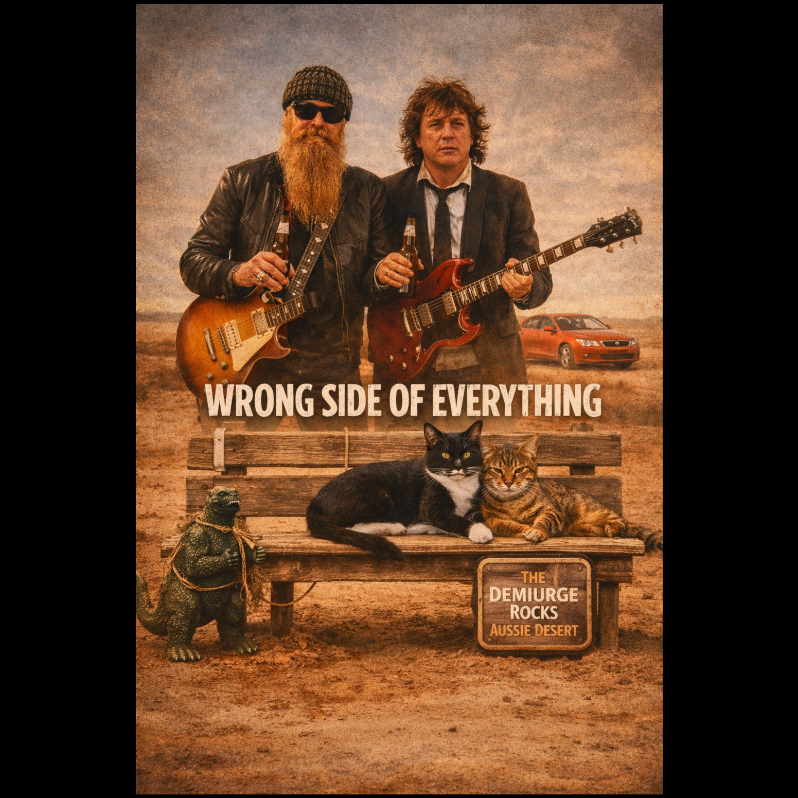 Rock, Blues Rock, Southern Rock tres hombres 1973 style texas blues rock raw billy gibbons gibson les paul cranked tube amp greasy slow fat blues phrases dusty hill bass locked simple massive frank beard shuffle drums engine no fills extended guitar duel billy slow fat blues vs angus young fast aggressive sg call and response three minutes dry dead room no artificial reverb analog tape saturation heavy australian outback red dust desert heat three women red holden commodore wrong artist right place pub in the middle of nowhere 92 bpm heavy shuffle lufs 9 no polish no shine just texas grit and australian dust