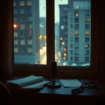 Late evening atmosphere, dim lights, paper resting on a table, quiet presence, the feeling of being alone together